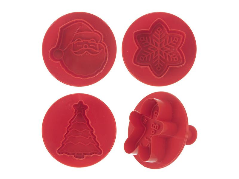 Vykrajovačka s pístem skvěle vytvoří domácí perníčky nebo sušenky. Nejdříve vykrojíte klasicky obrys, pomocí pístu pak obtisknete plastický vzor. Sada 4 vánočních tvarů – stromeček, vločka, Santa, Perníček. Vhodné nejen na sušenky a perníčky, ale také na marcipánové ozdoby nebo modelovací hmotu.