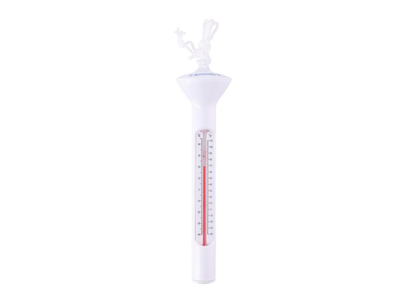 Analogový teploměr do bazénu - díky vestavěnému plováčku drží teploměr na hladině bazénu - k teploměru je připevněna praktická šňůra pro přitáhnutí - provedení v bílé barvě - ukazatel v °C a v °F - rozsah měření : 0-50°C - rozměry: o 5 x 19 cm