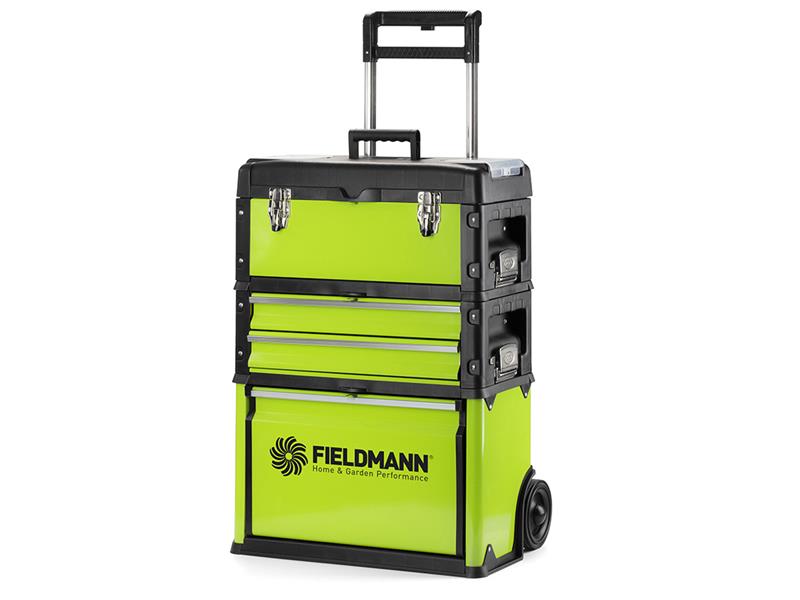 Novinka v sortimentu značky Fieldmann – třídílný box na nářadí FDN 4150, je vyrobený z kovu, má tedy bytelnou konstrukci, která zajistí odolnost i bezpečí pro uložené věci. S jeho pomocí snadno, rychle a bez větší námahy dopravíte množství nástrojů, příslušenství a drobného materiálu i na větší vzdálenosti např. na chalupu, na stavbu apod.
