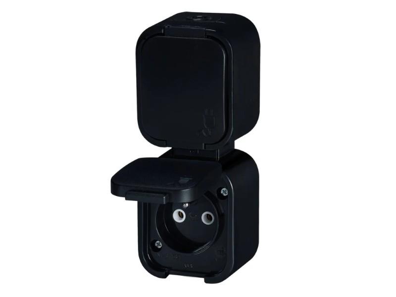 NT-6B2/P zásuvka dvojnásobná 2p+Z s víčkem IP54 černá vertikální