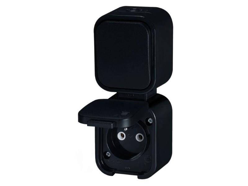 GWN-B2/P zásuvka jednonásobná 2p+Z s víčkem + spínač IP54 černá vertikální