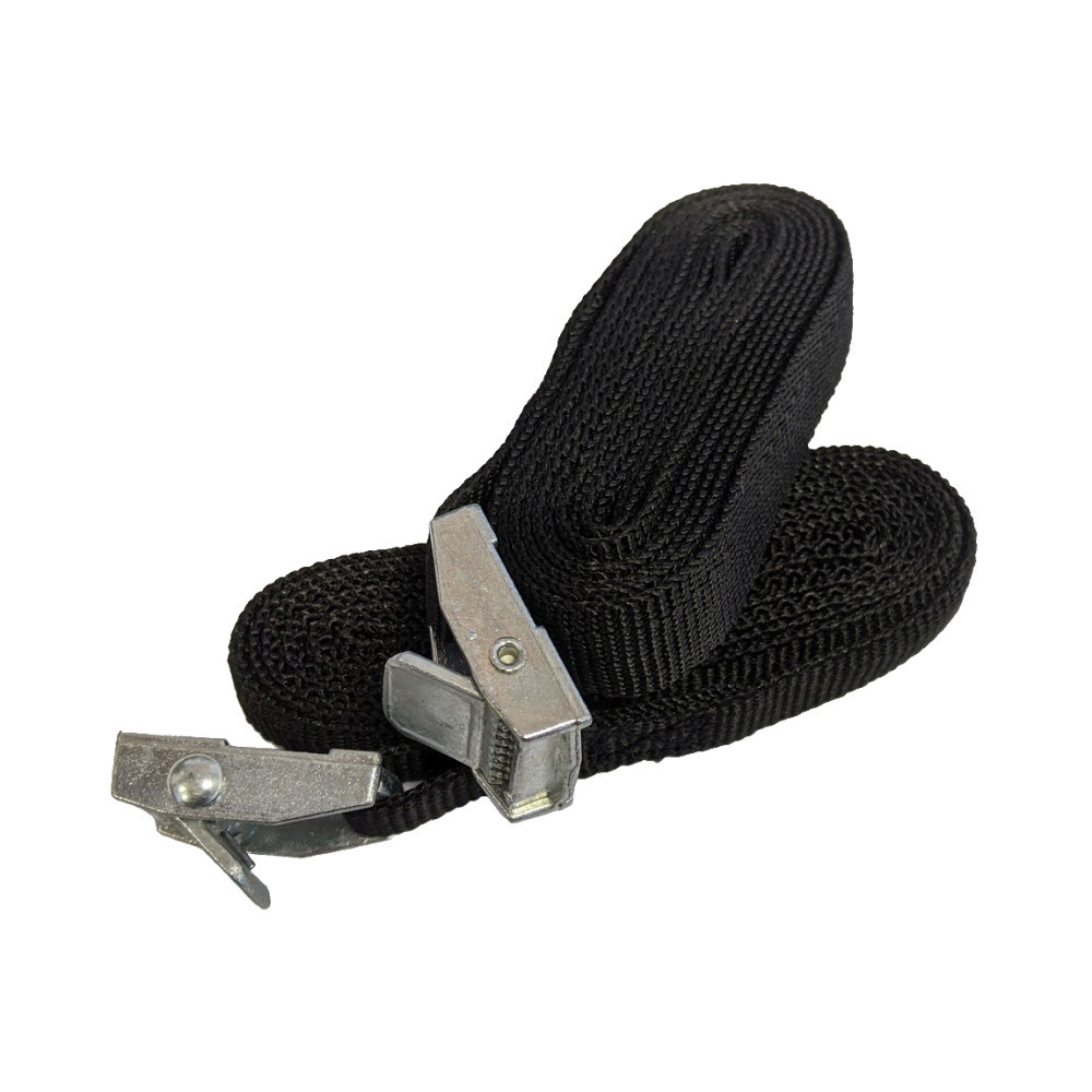 Textilní pásek s kovovou sponou pro upevnění nákladu ve střešním boxu.