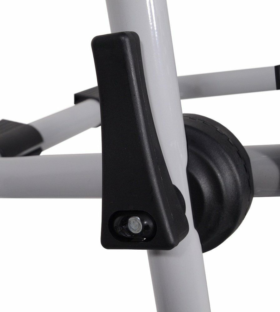 Upevnění kola do nosiče pomocí jednoduchých objímek s fixační sponou, kterou lze upevnit i jednou rukou.