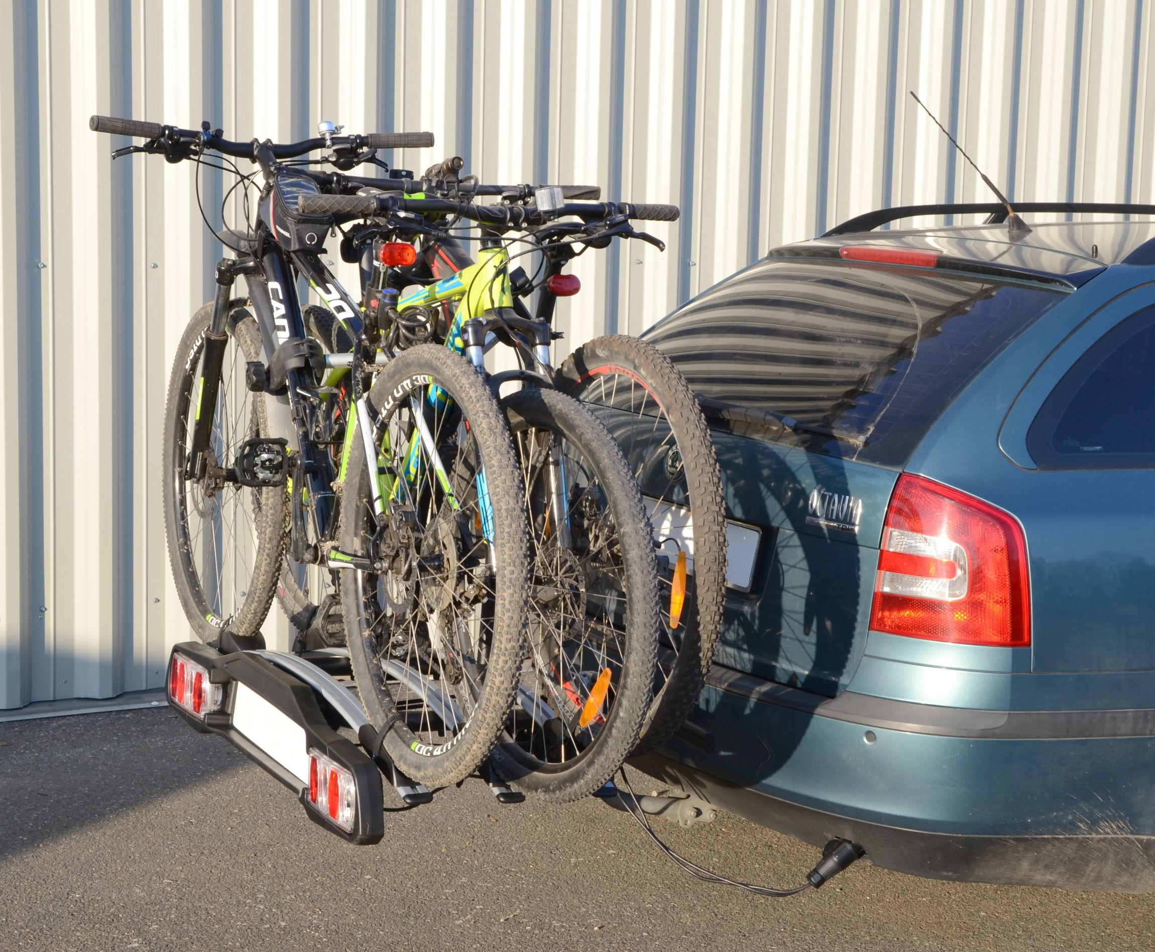 Univerzální nosič jízdních kol s jednoduchým systémem upevnění, sklápěním pro přístup do kufru, s kompletně osvětleným panelem a místem pro SPZ.