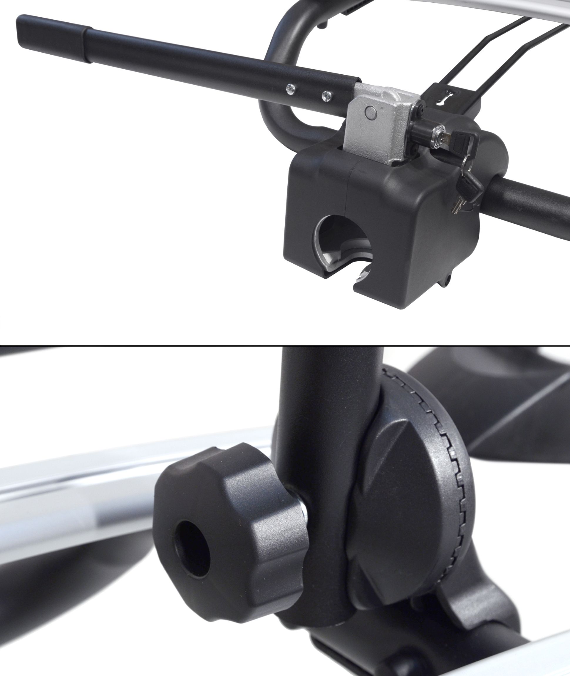 Upevnění kola do nosiče se obejde bez nářadí, provádí se uchycením držáku na rám a dotažením spon na kola, umístěných na základně. Mechanismus je uzamykací a nehrozí tak odcizení kola.