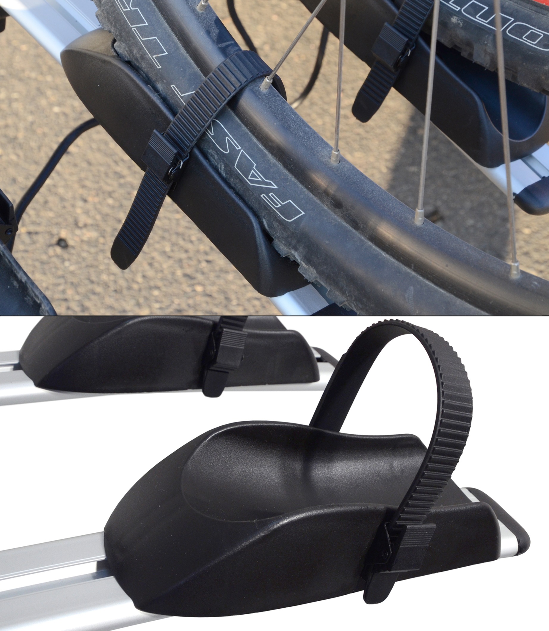 Upevnění kola do nosiče se obejde bez nářadí, provádí se uchycením držáku na rám a dotažením spon na kola, umístěných na základně. Mechanismus je uzamykací a nehrozí tak odcizení kola. Růžici pro upevnění jízdního kola je nutné důkladně dotáhnout, aby se překonal odpor prokluzu v zamčené poloze.