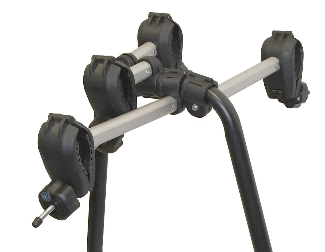 Univerzální nosič jízdních kol s jednoduchým systémem upevnění, sklápěním pro přístup do kufru, s kompletně osvětleným panelem a místem pro SPZ.
