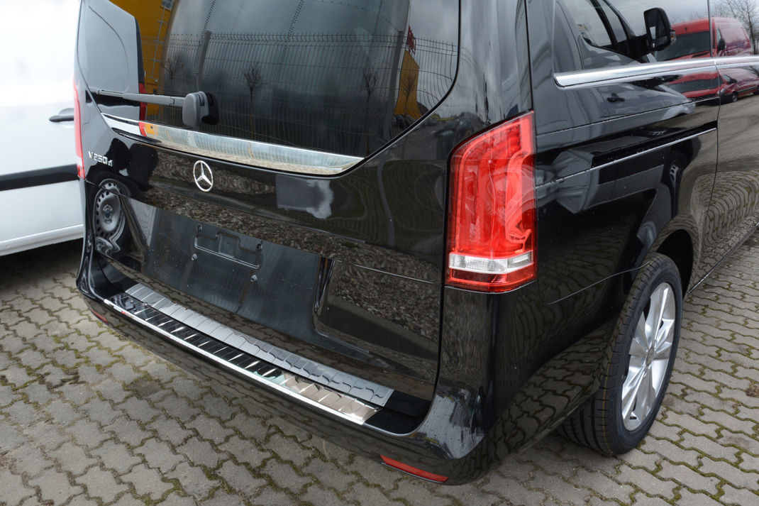 Ochranná lišta na zadní nárazník vozu Mercedes V-Class je vyrobená z nerezové oceli. Lišta je odolná proti veškerým povětrnostním vlivům i vlhkosti. Spolehlivě chrání nárazník před odřením při nakládání i vykládání věcí ze zavazadlového prostoru.