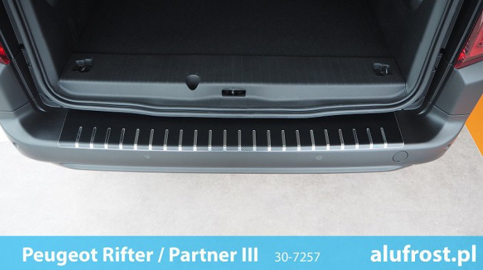 Ochranná lišta na zadní nárazník vozu Opel Combo E je vyrobená z nerezové oceli a potažená karbonovou fólií. Lišta je odolná proti veškerým povětrnostním vlivům i vlhkosti. Spolehlivě chrání nárazník před odřením při nakládání i vykládání věcí ze zavazadlového prostoru.