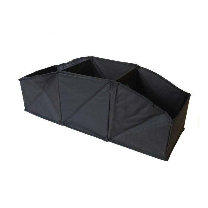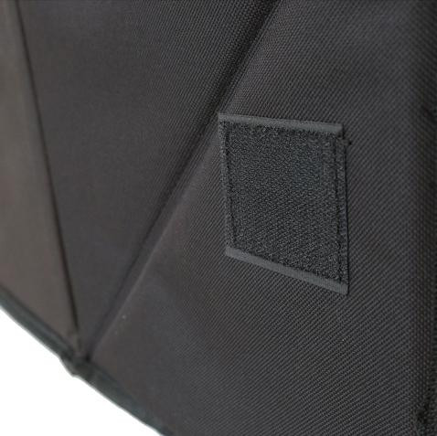 Stěny organizéru jsou zesíleny pružným a odolným plastem. Spodní strana organizéru je osazena suchými zipy, ktere zabraňují klouzání v kufru.