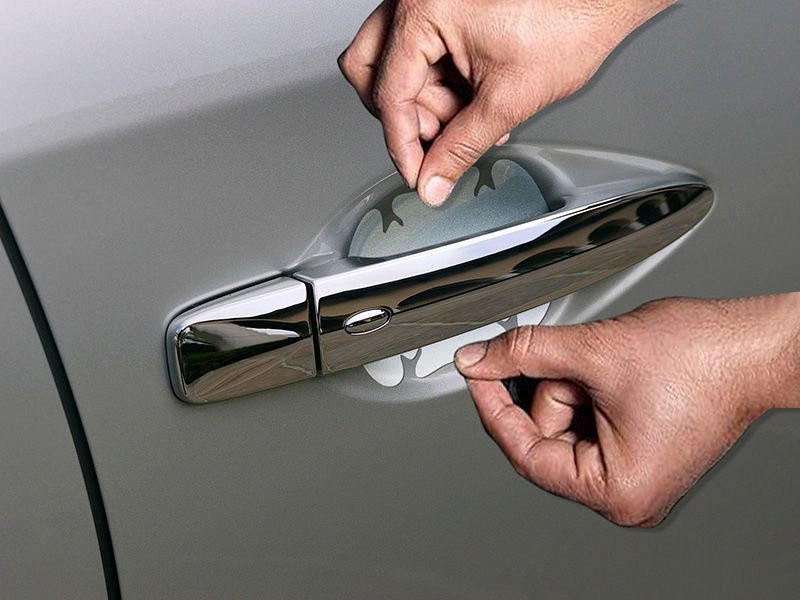 Průhledná ochranná fólie k ochraně proti poškrábaní laku pod klikama vozu od firmy Avisa.