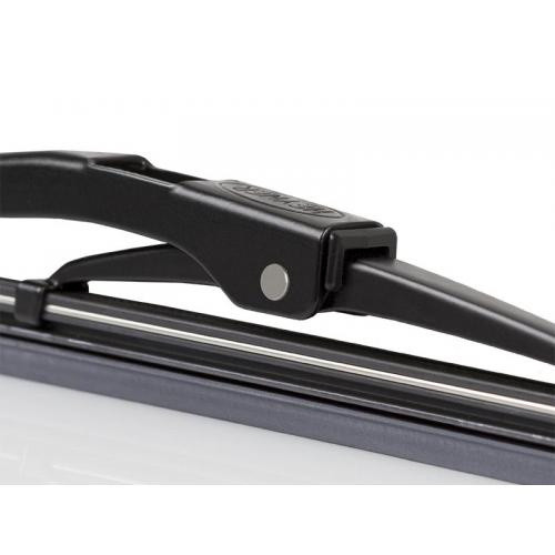 Kvalitní stěrače s kovovým ramínkem značky Heyner Exclusive mají grafitovou, vysoce pružnou stírací lištu s přísadou teflonu, která zajišťuje rovnoměrný přítlak gumy stěračů po celé ploše. Díky aerodynamickému tvaru perfektně přiléhají ke sklu i ve vyšších rychlostech a způsobují minimální hluk. Výměna stěračů Heyner je velmi snadná a rychlá.