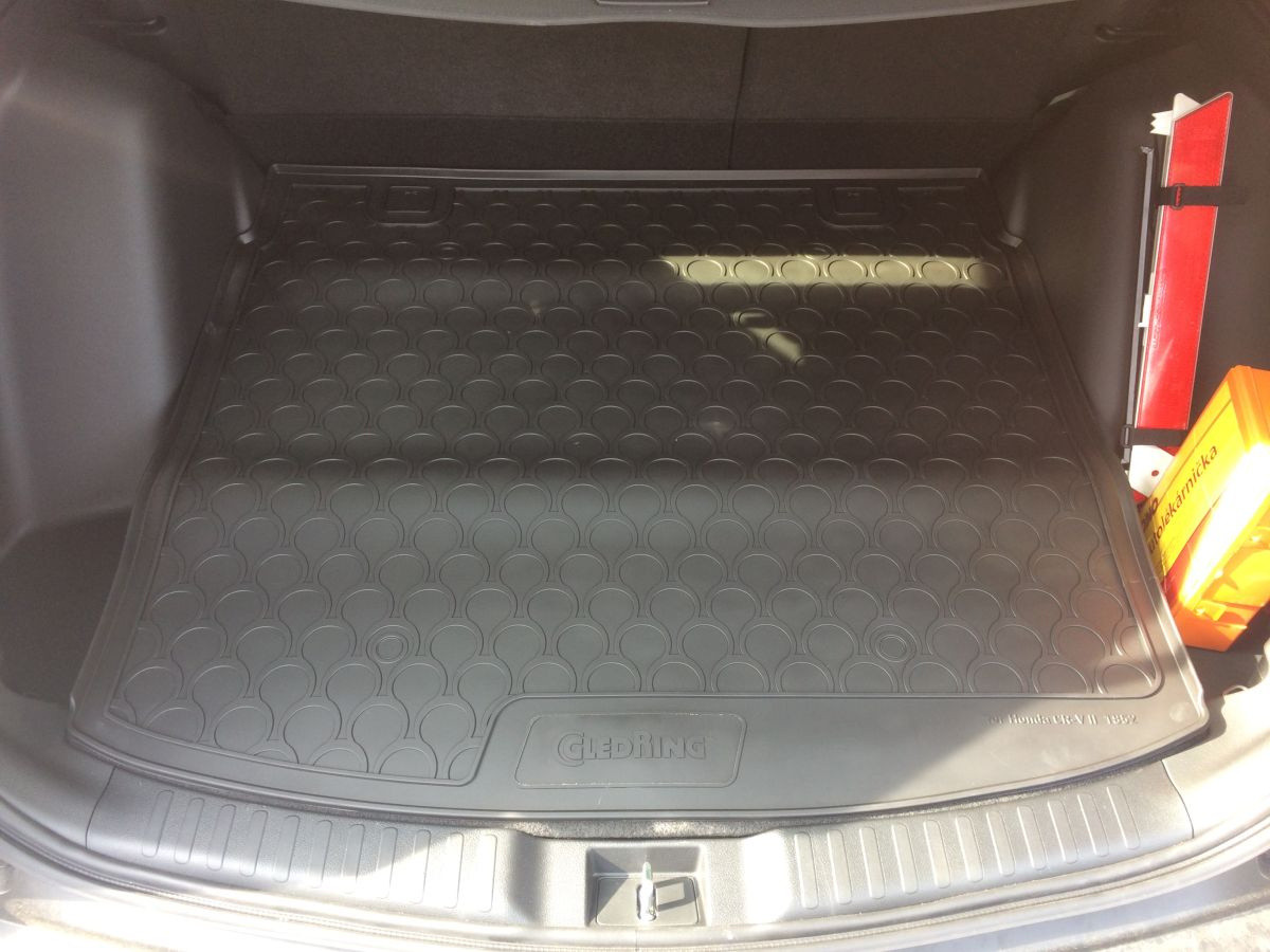 Gumová vana přesně pasuje do kufru vozu Honda CR-V. Má zvýšený okraj (1,8 cm) po celém obvodu a skvěle chrání interiér i původní koberec v kufru.