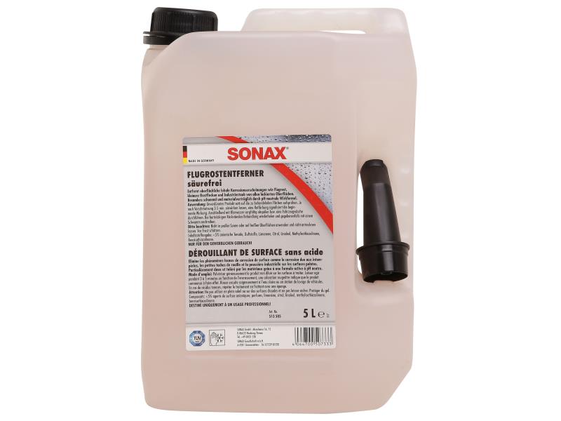 SONAX Odstraňovač vzdušné koroze - odvoskovač - na odstraňování vzdušné koroze, korozních skvrn, vápenných usazenin a průmyslového prachu. Speciální výrobek na odstraňování koroze z laků a lakovaných plastů. Odstraňuje korozní skvrny, vápenné usazeniny a průmyslový prach. Výrobek je šetrný díky neutrálnímu pH.