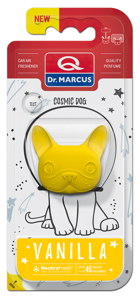 Cosmic Dog je nová řada osvěžovačů vzduchu do ventilační mřížky ve vašem autě. Stylový výrobek jemného designu kombinovaný s příjemným složením vůně je ideální společník na cesty.