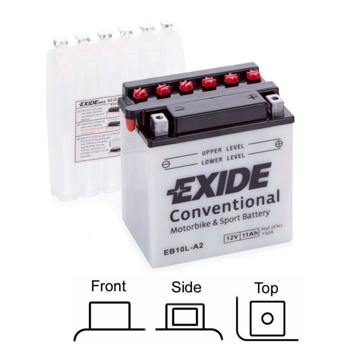 Exide EB10L-A2 - motobaterie EXIDE suchá, přednabitá 12V 11Ah 130A 135x90x145 levý odvod plynu