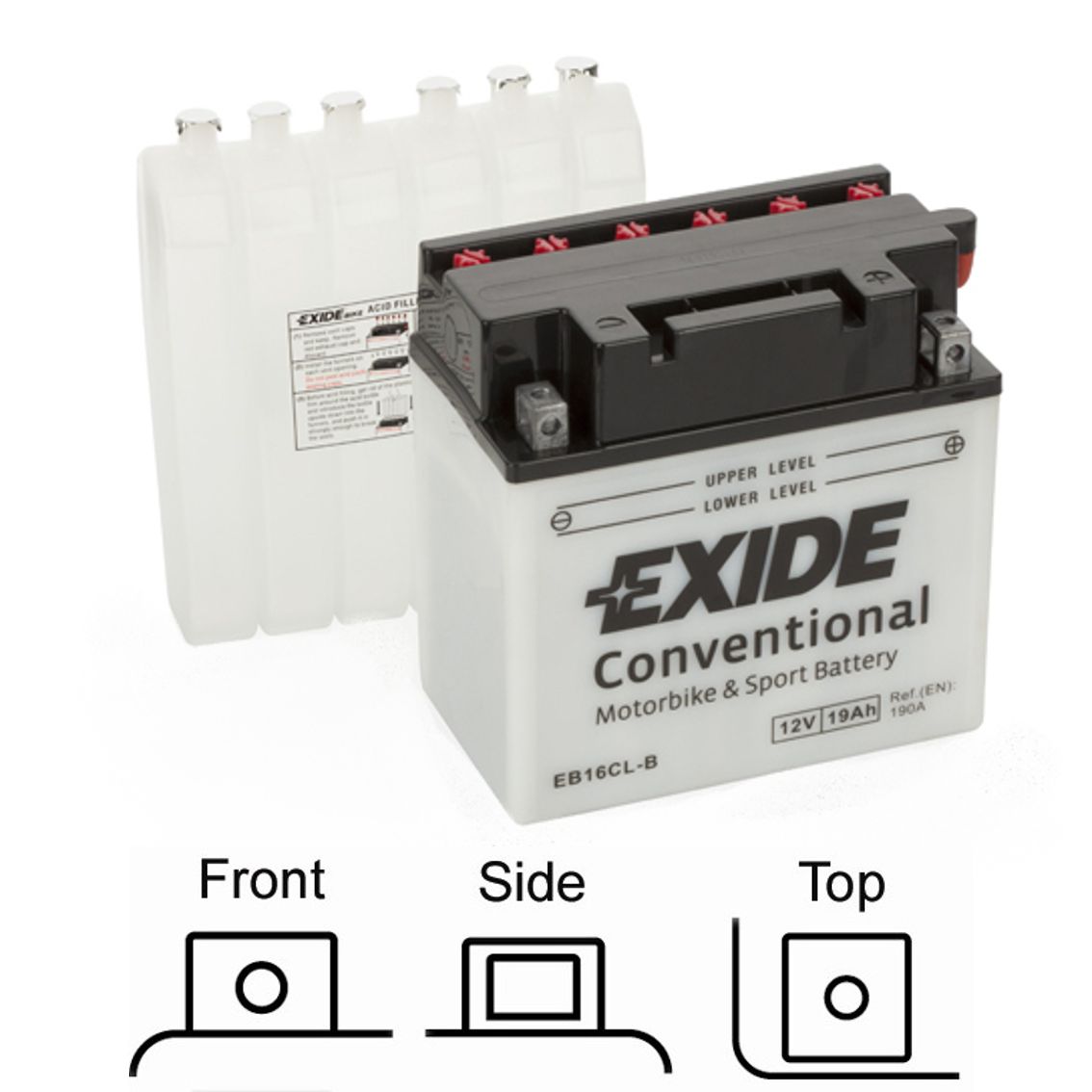Exide EB16CL-B - motobaterie EXIDE suchá, přednabitá 12V 19Ah 190A 175x100x175