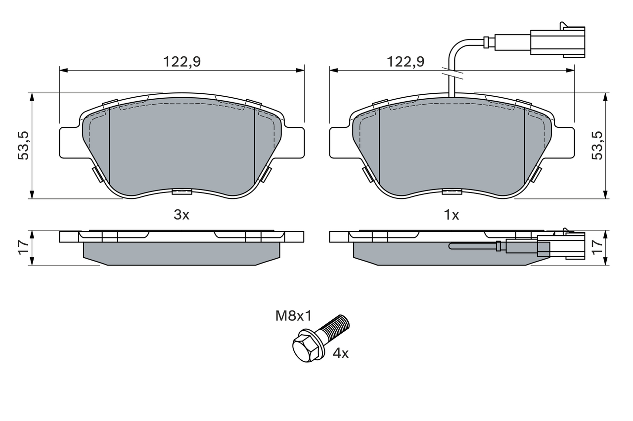 BOSCH 0 986 424 597 - Sada brzdových destiček, vždy 4 kusy v sadě