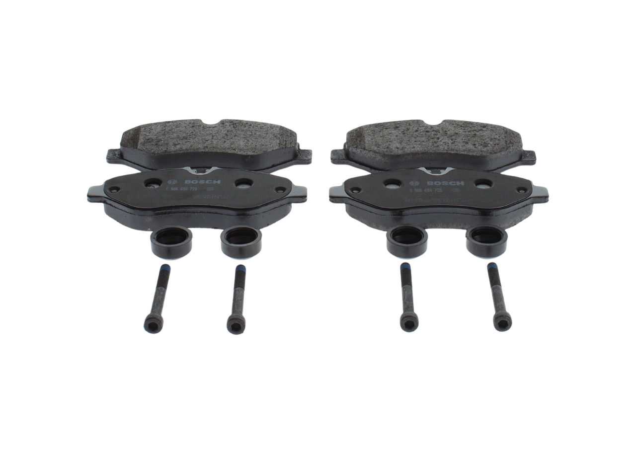 BOSCH 0 986 494 728 - Sada brzdových destiček, vždy 4 kusy v sadě