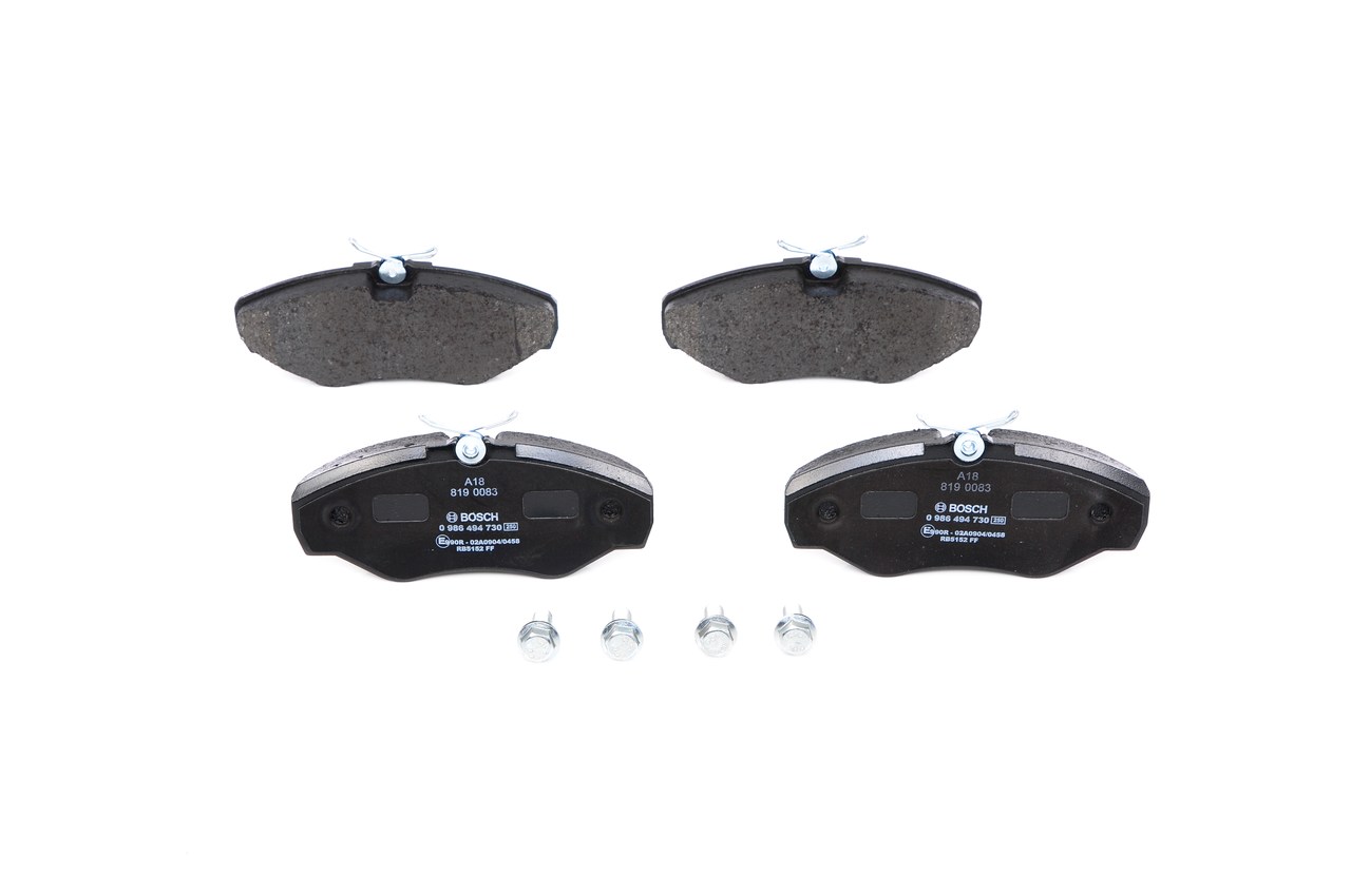 BOSCH 0 986 494 730 - Sada brzdových destiček, vždy 4 kusy v sadě