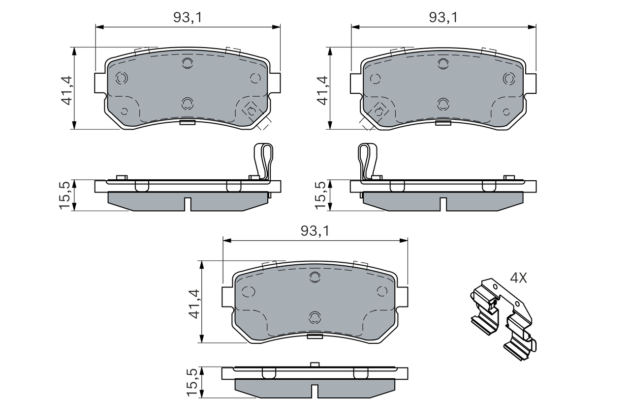BOSCH 0 986 494 887 - Sada brzdových destiček, vždy 4 kusy v sadě
