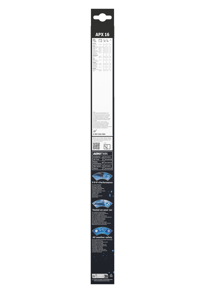 Bosch AeroTwin představují špičku mezi moderními automobilovými stěrači. Jde o bezramínkové (flat) stěrače, které díky pokročilé technologii vyvinuté firmou Bosch zajišťují maximální čistotu skla, tichý chod a dlouhou životnost. AeroTwin jsou oblíbenou volbou pro první výbavu i následnou výměnu (Aftermarket) a najdete je na milionech vozidel po celém světě. [Více zde]
