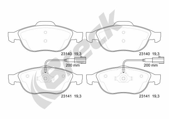 BRECK 23140 00 701 10 - Sada brzdových destiček, vždy 4 kusy v sadě