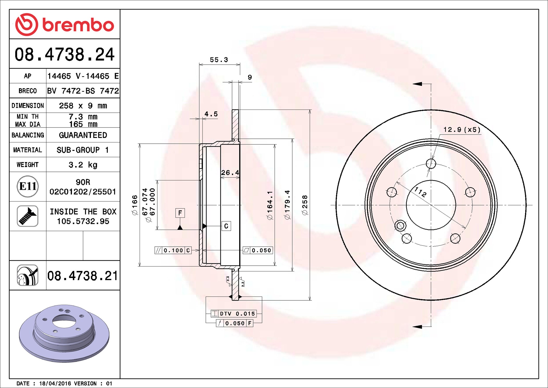 BREMBO 08.4738.21 - Brzdový kotouč