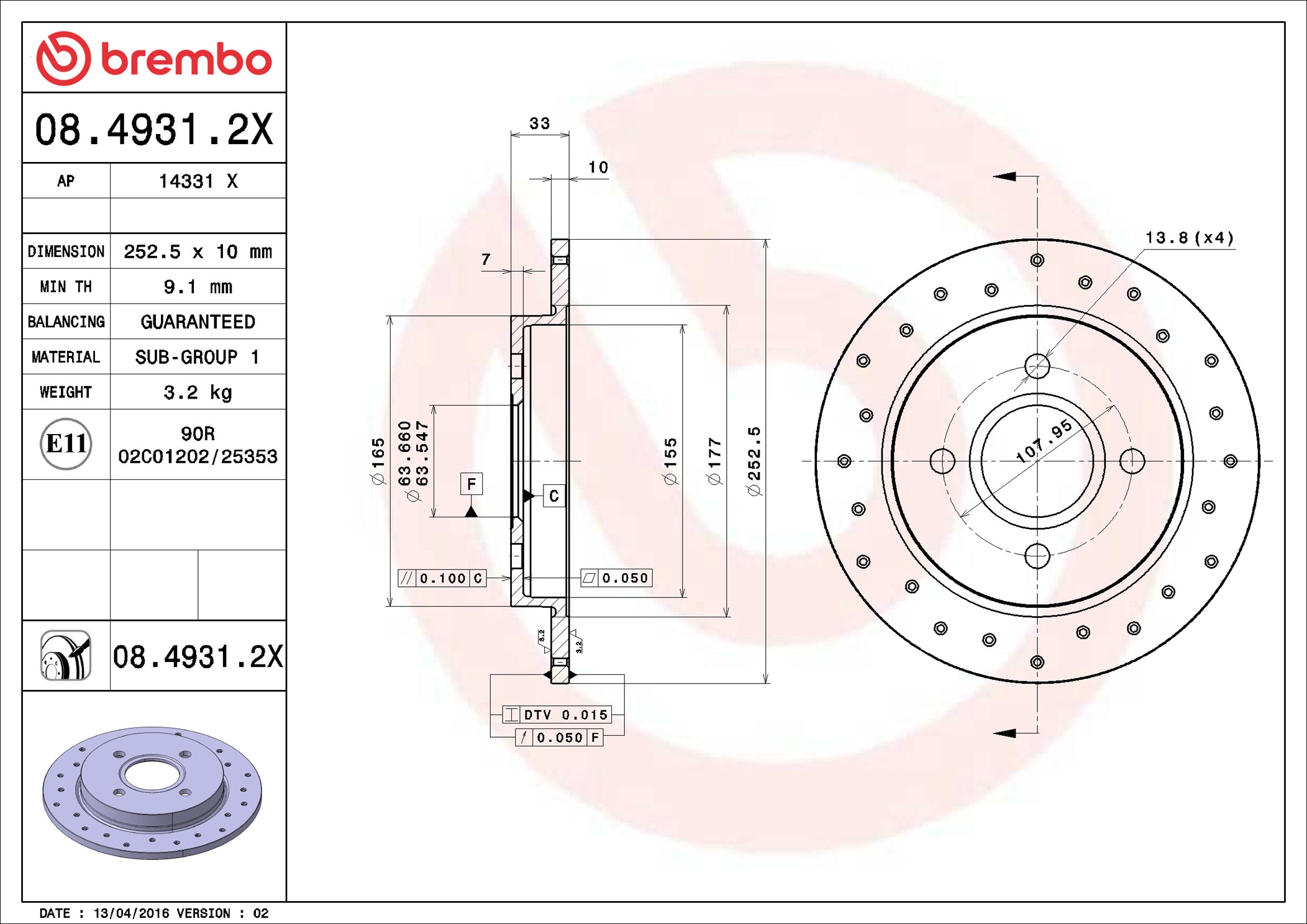 BREMBO 08.4931.2X - Brzdový kotouč