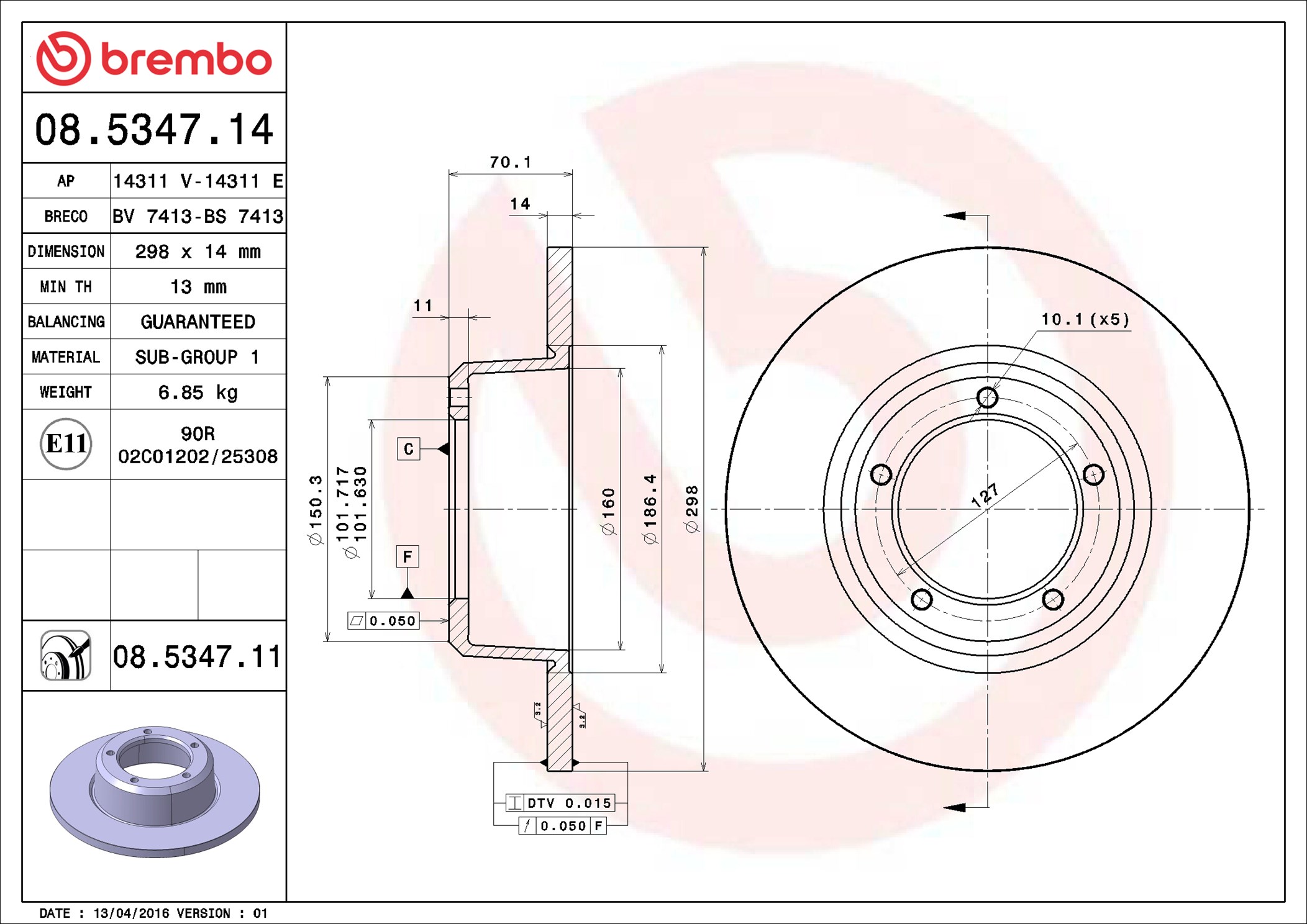 BREMBO 08.5347.11 - Brzdový kotouč