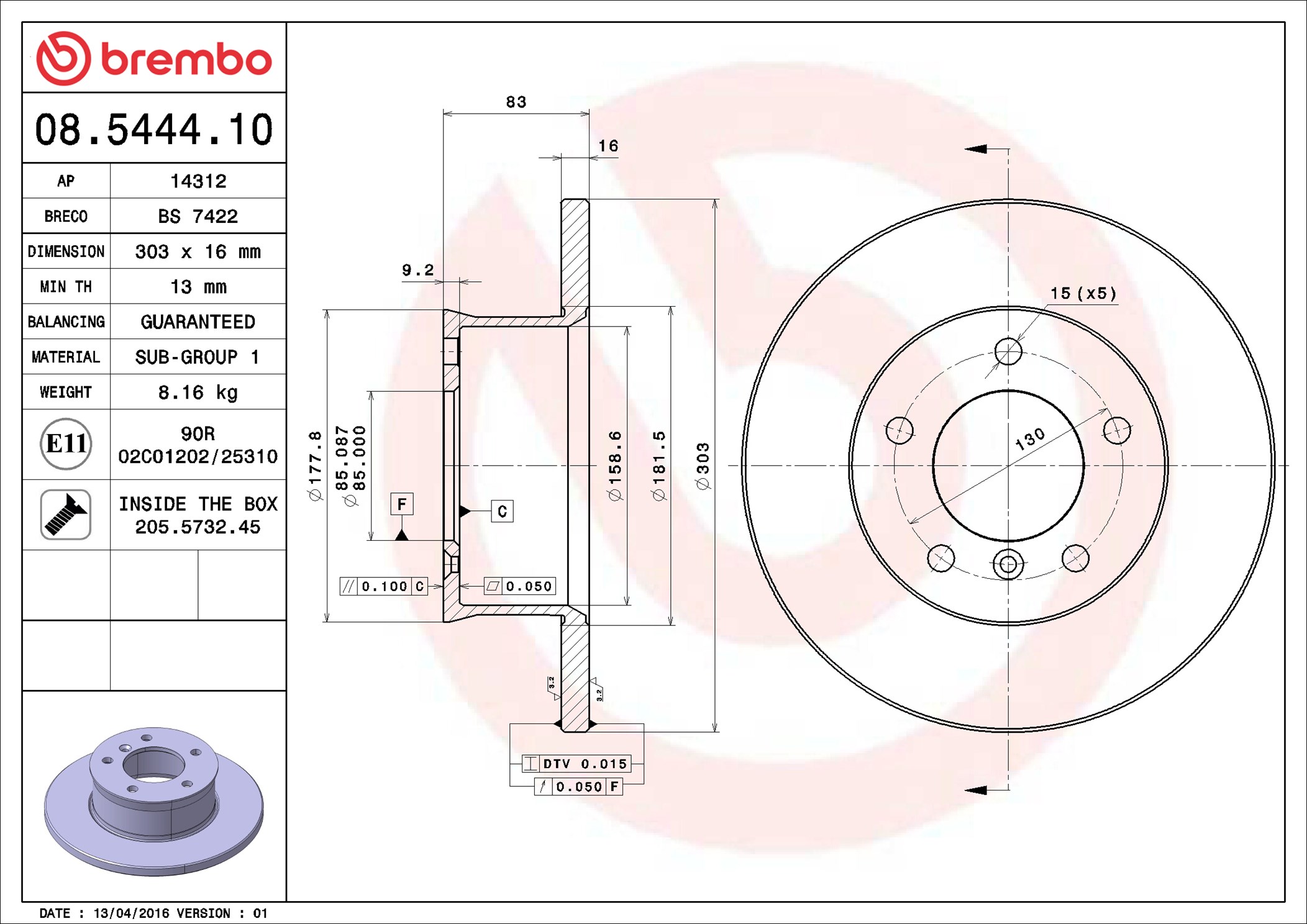 BREMBO 08.5444.10 - Brzdový kotouč
