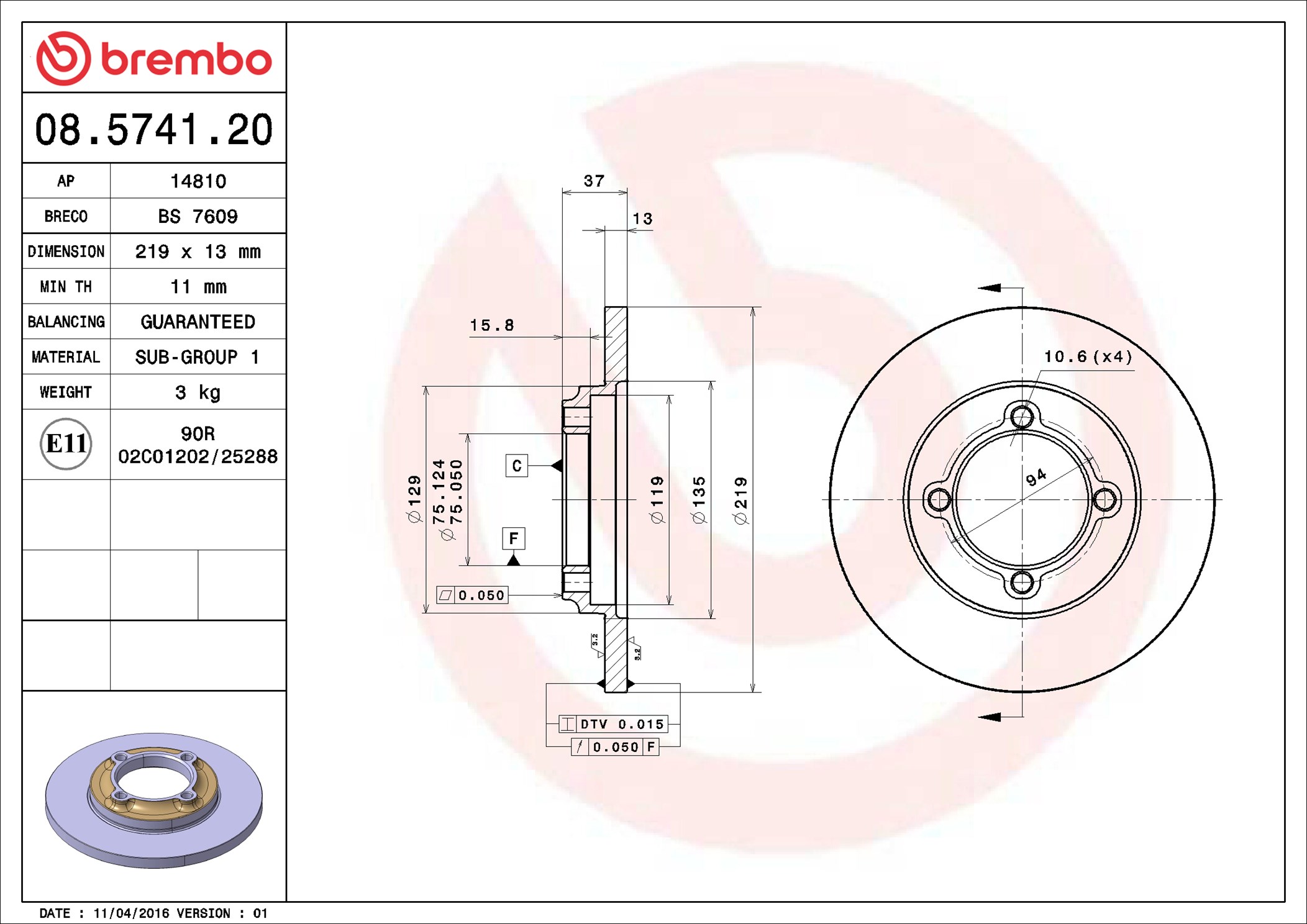 BREMBO 08.5741.20 - Brzdový kotouč