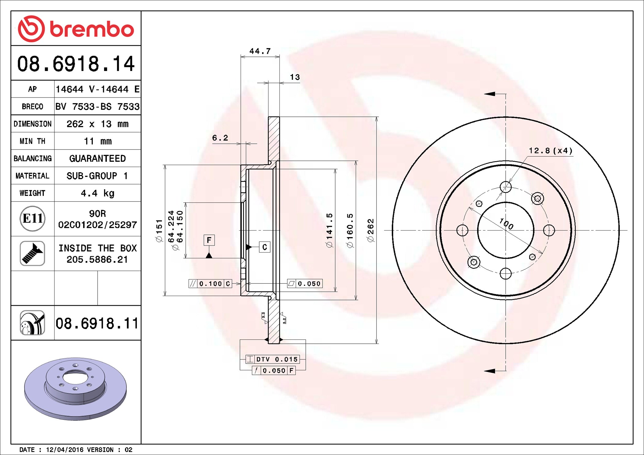 BREMBO 08.6918.11 - Brzdový kotouč