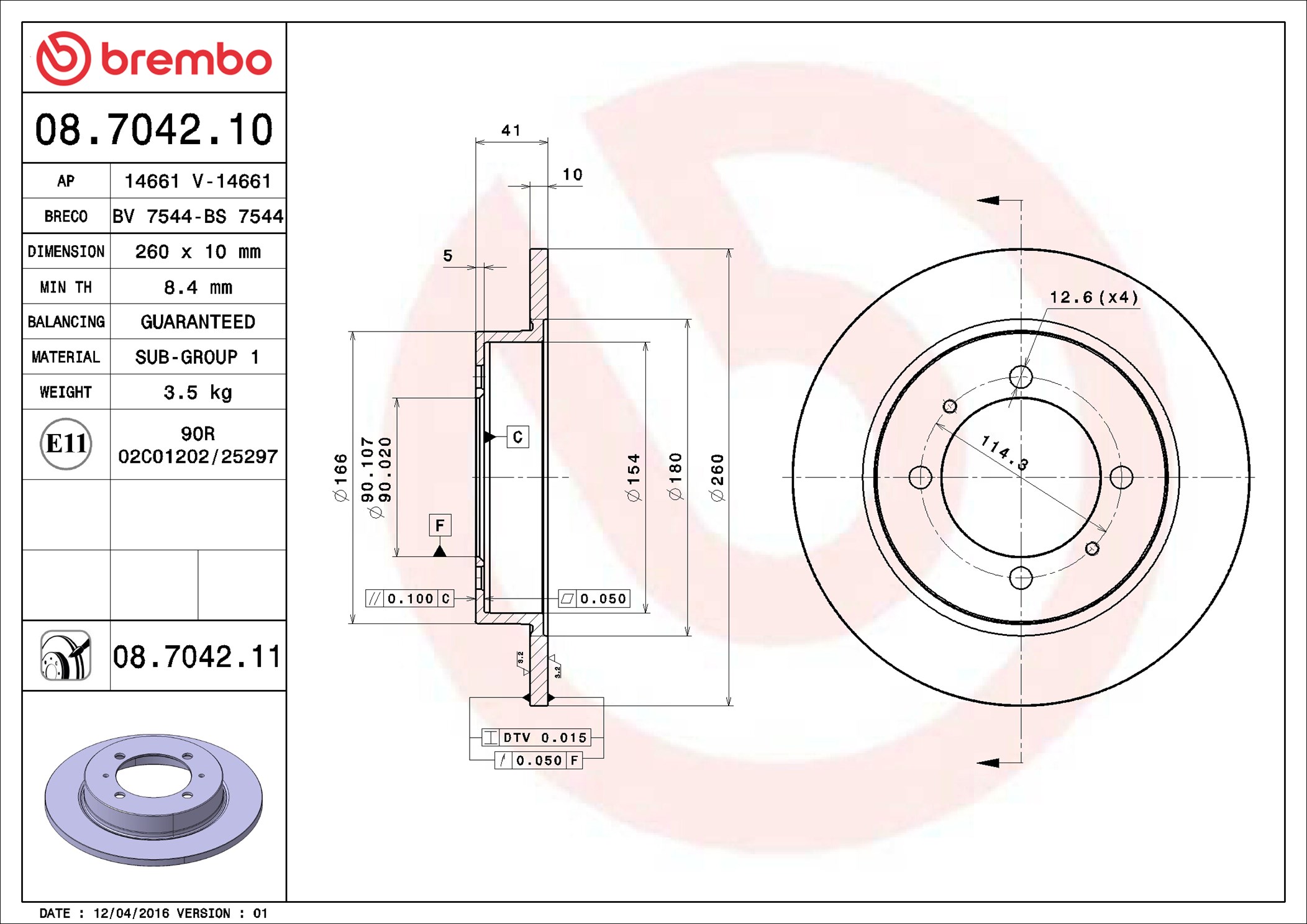 BREMBO 08.7042.11 - Brzdový kotouč