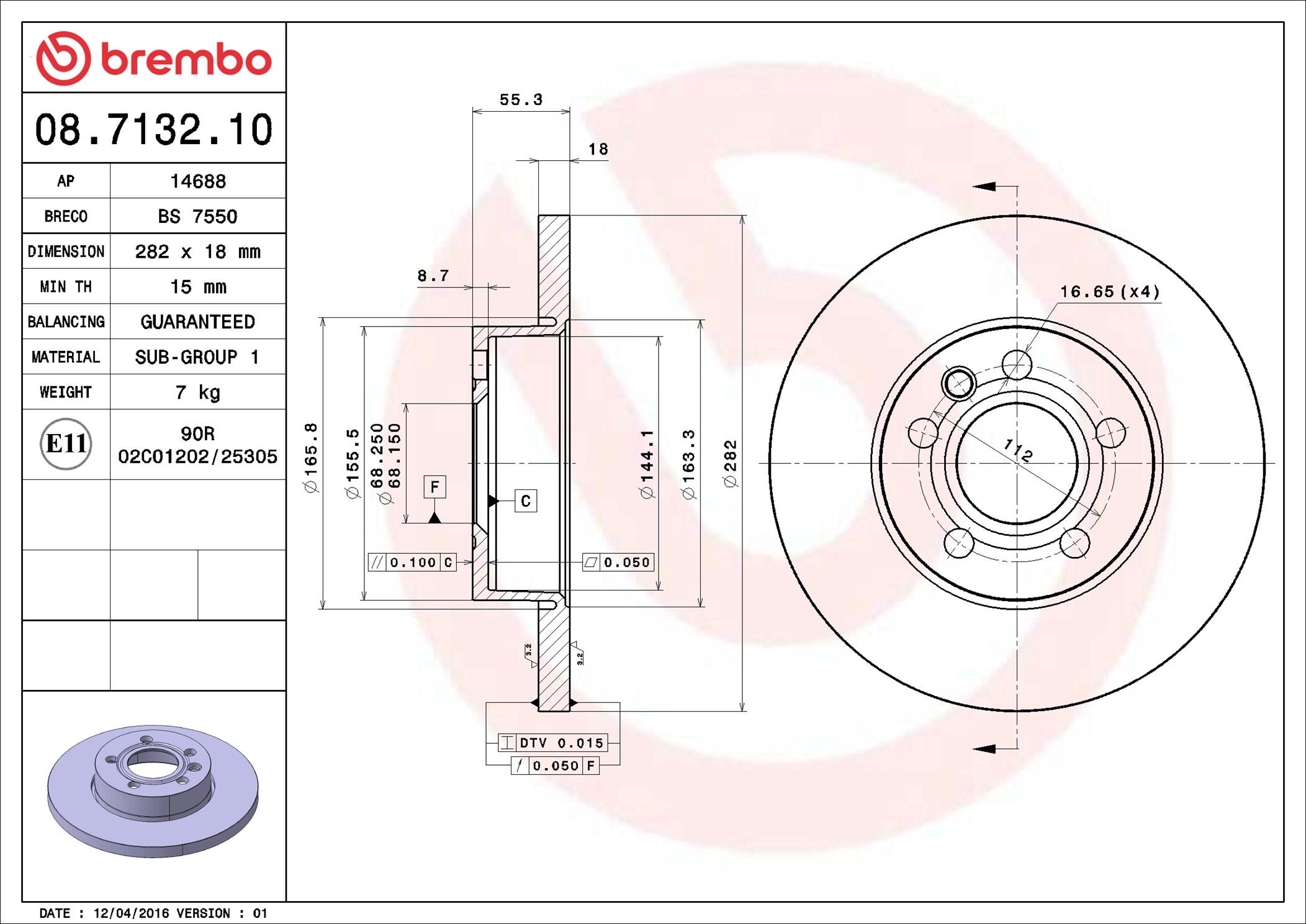 BREMBO 08.7132.10 - Brzdový kotouč