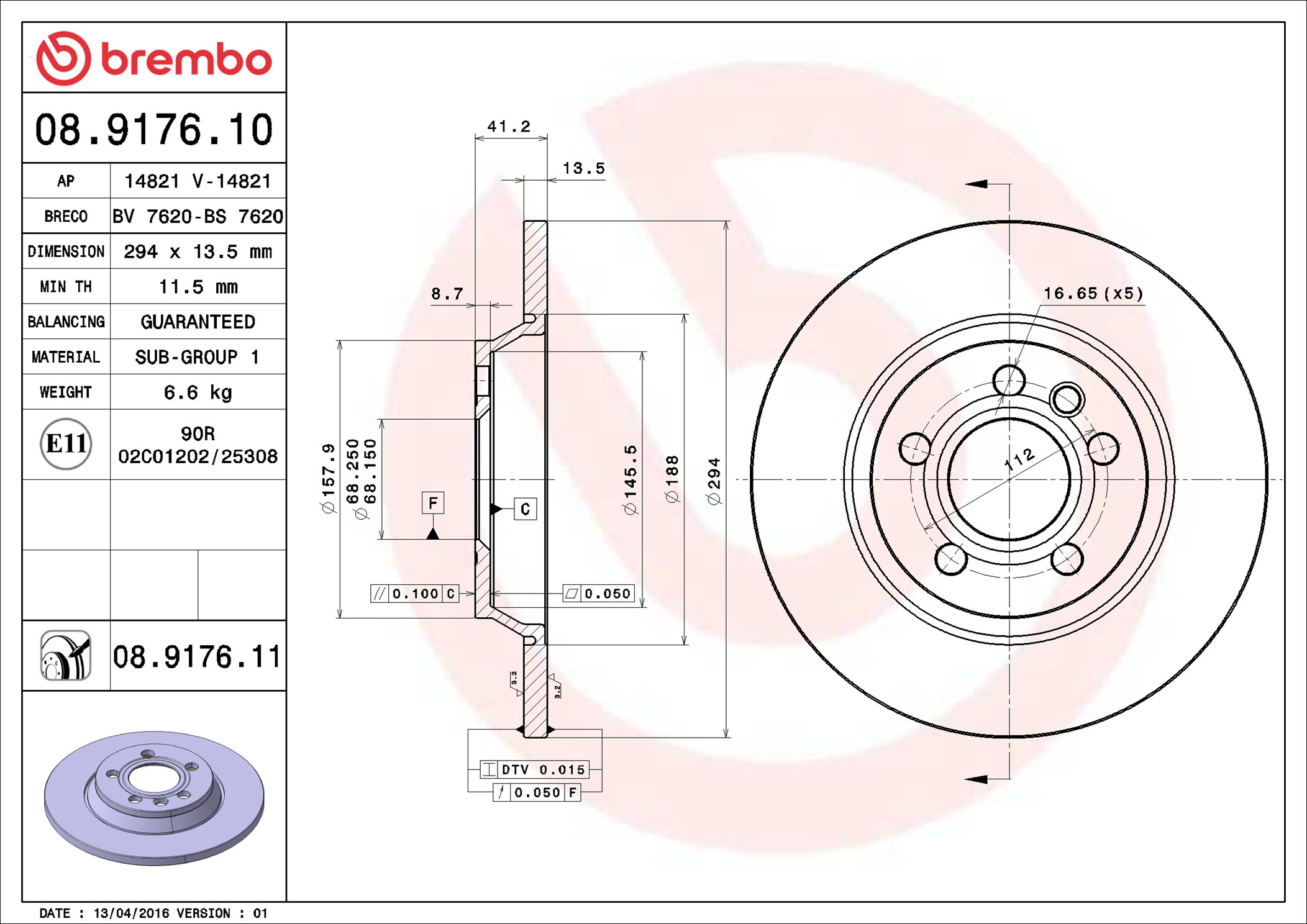 BREMBO 08.9176.11 - Brzdový kotouč