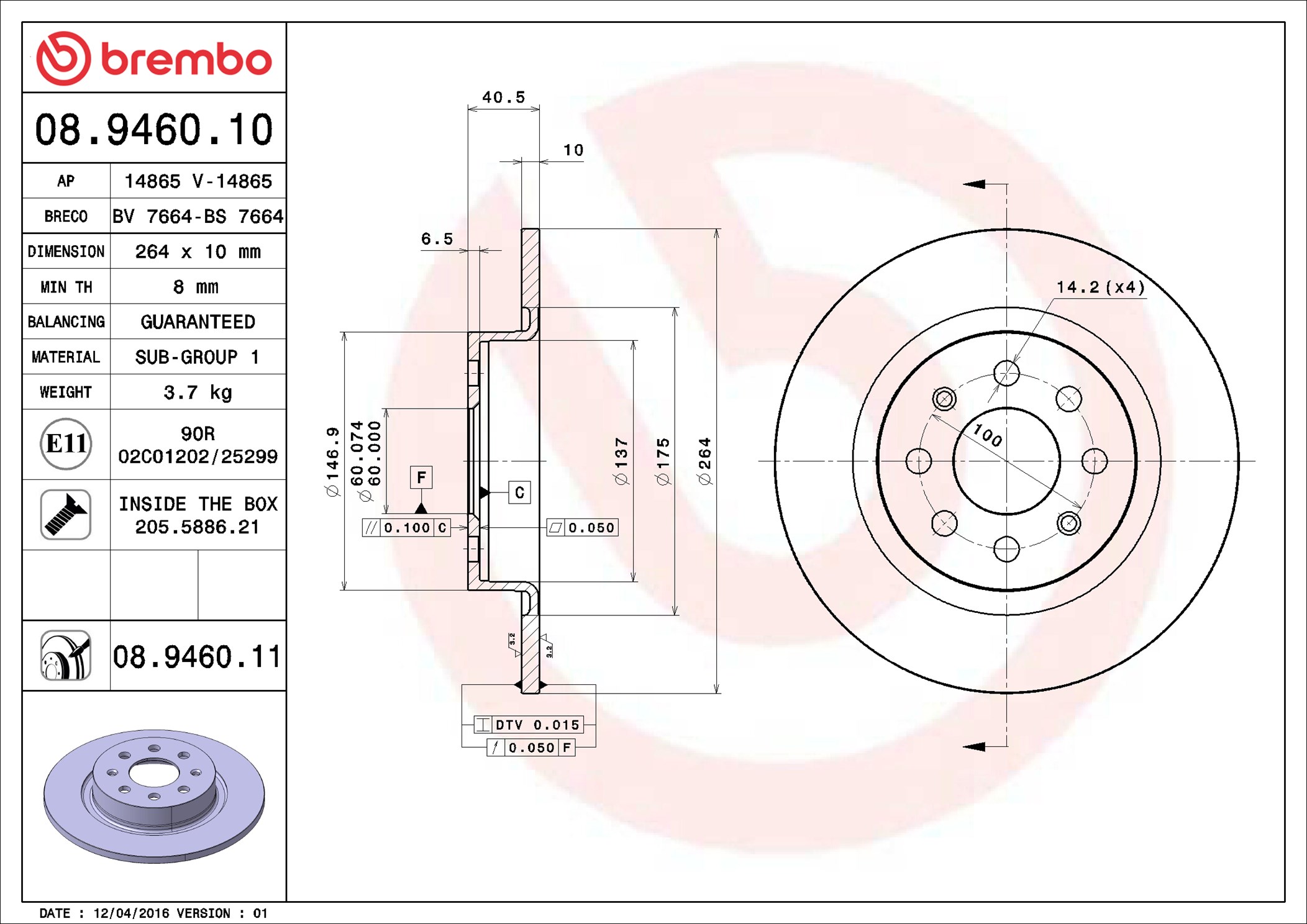 BREMBO 08.9460.11 - Brzdový kotouč