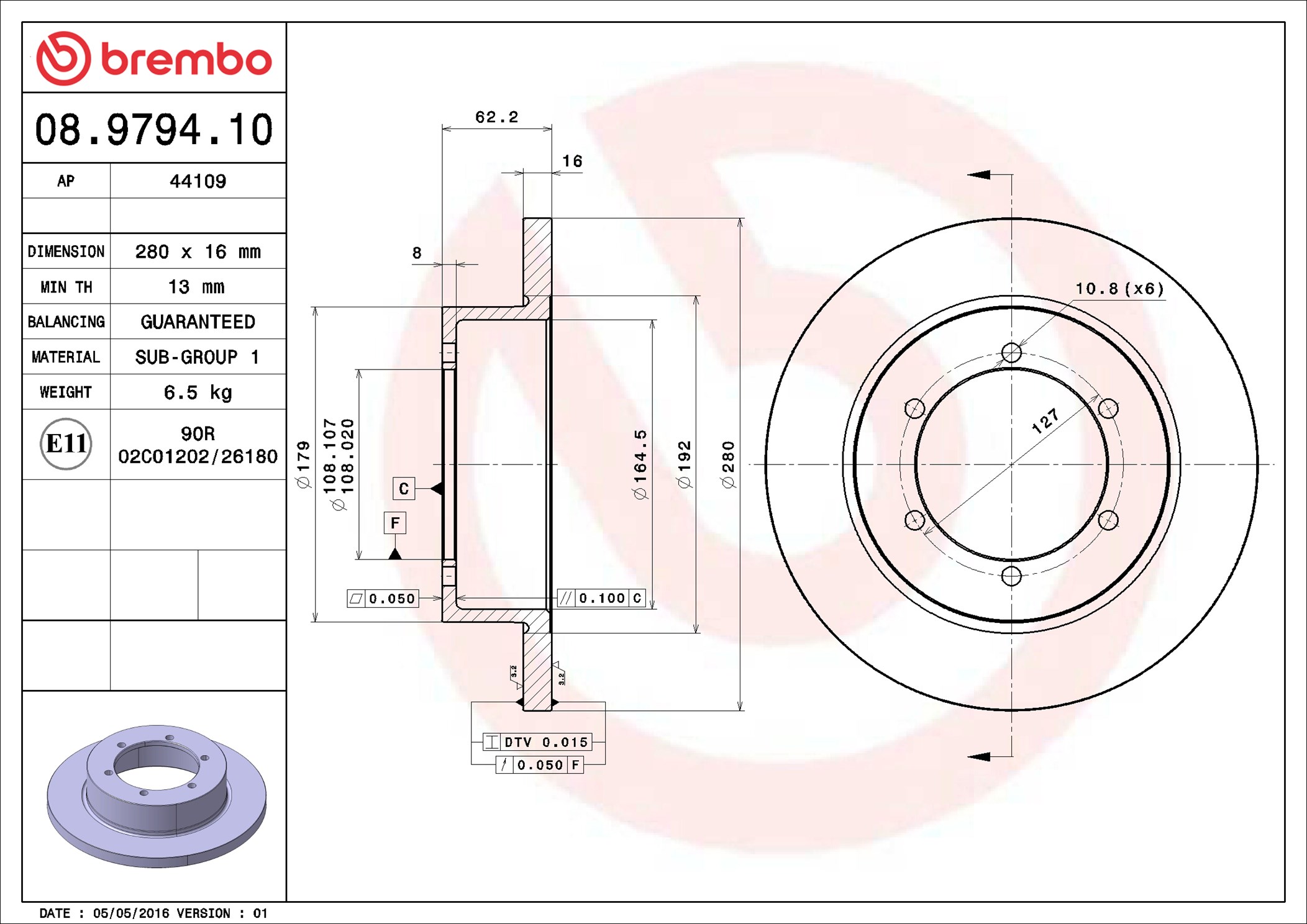 BREMBO 08.9794.10 - Brzdový kotouč