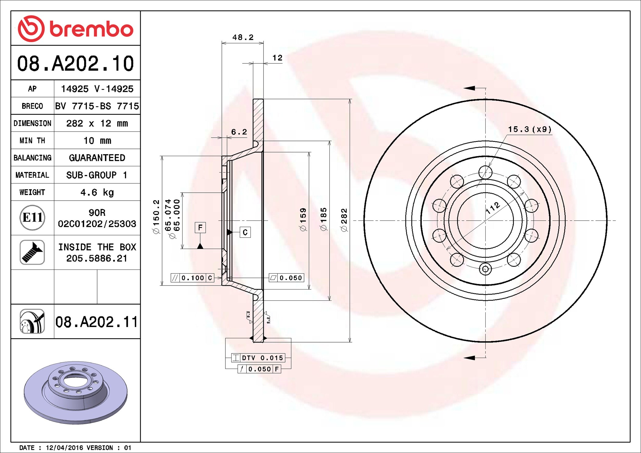 BREMBO 08.A202.11 - Brzdový kotouč