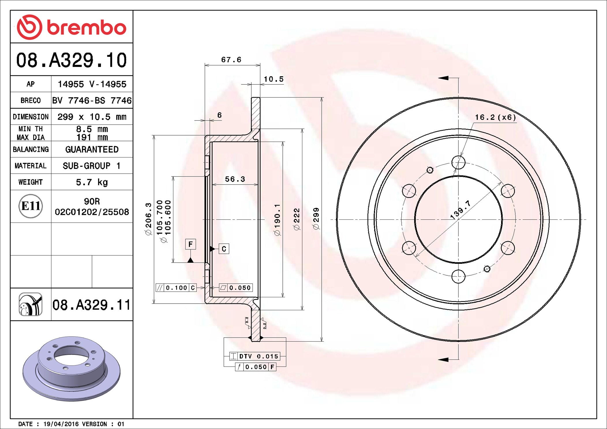 BREMBO 08.A329.11 - Brzdový kotouč