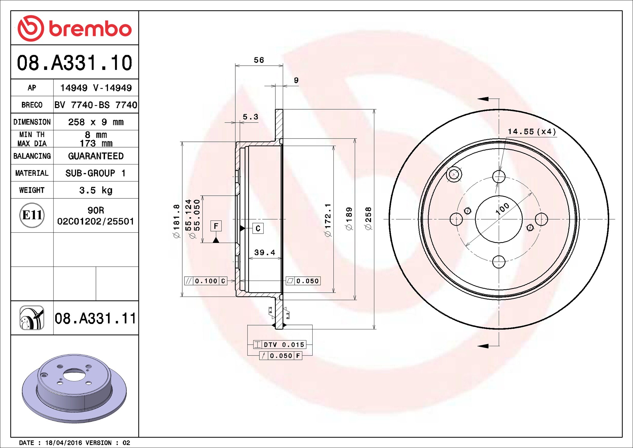 BREMBO 08.A331.11 - Brzdový kotouč