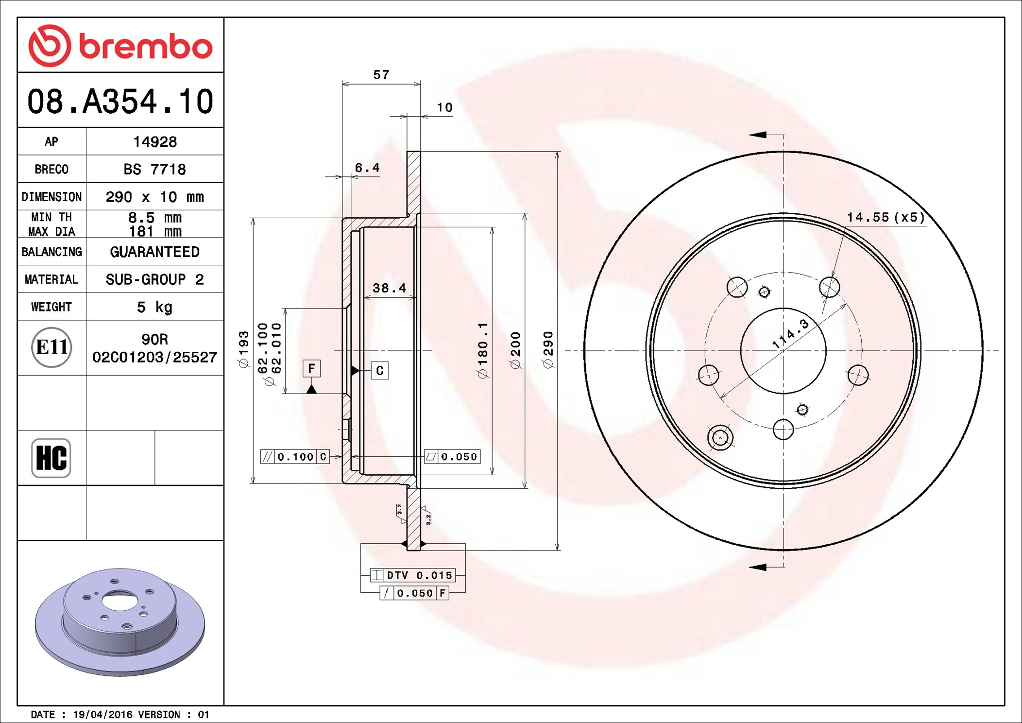 BREMBO 08.A354.10 - Brzdový kotouč