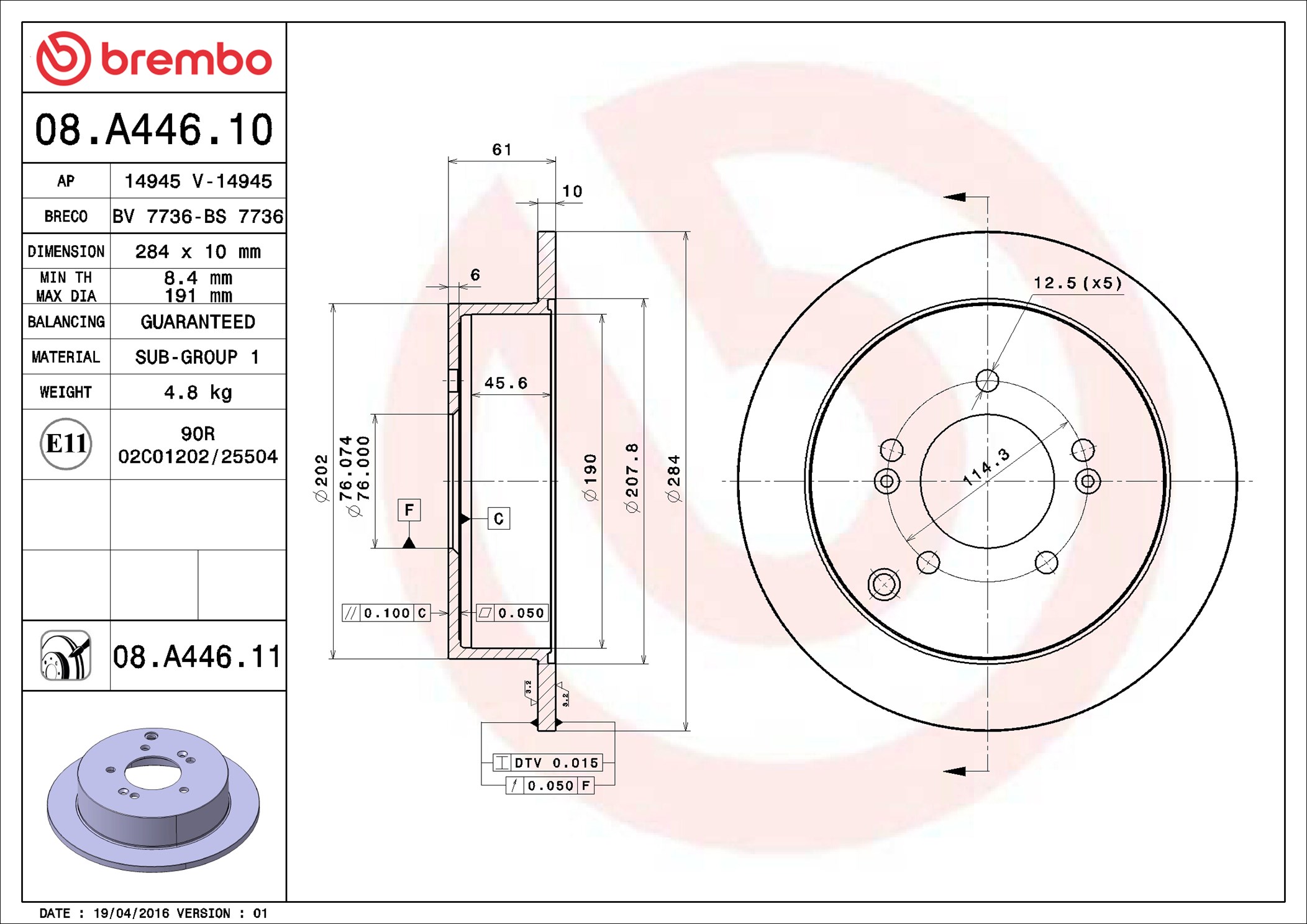 BREMBO 08.A446.11 - Brzdový kotouč