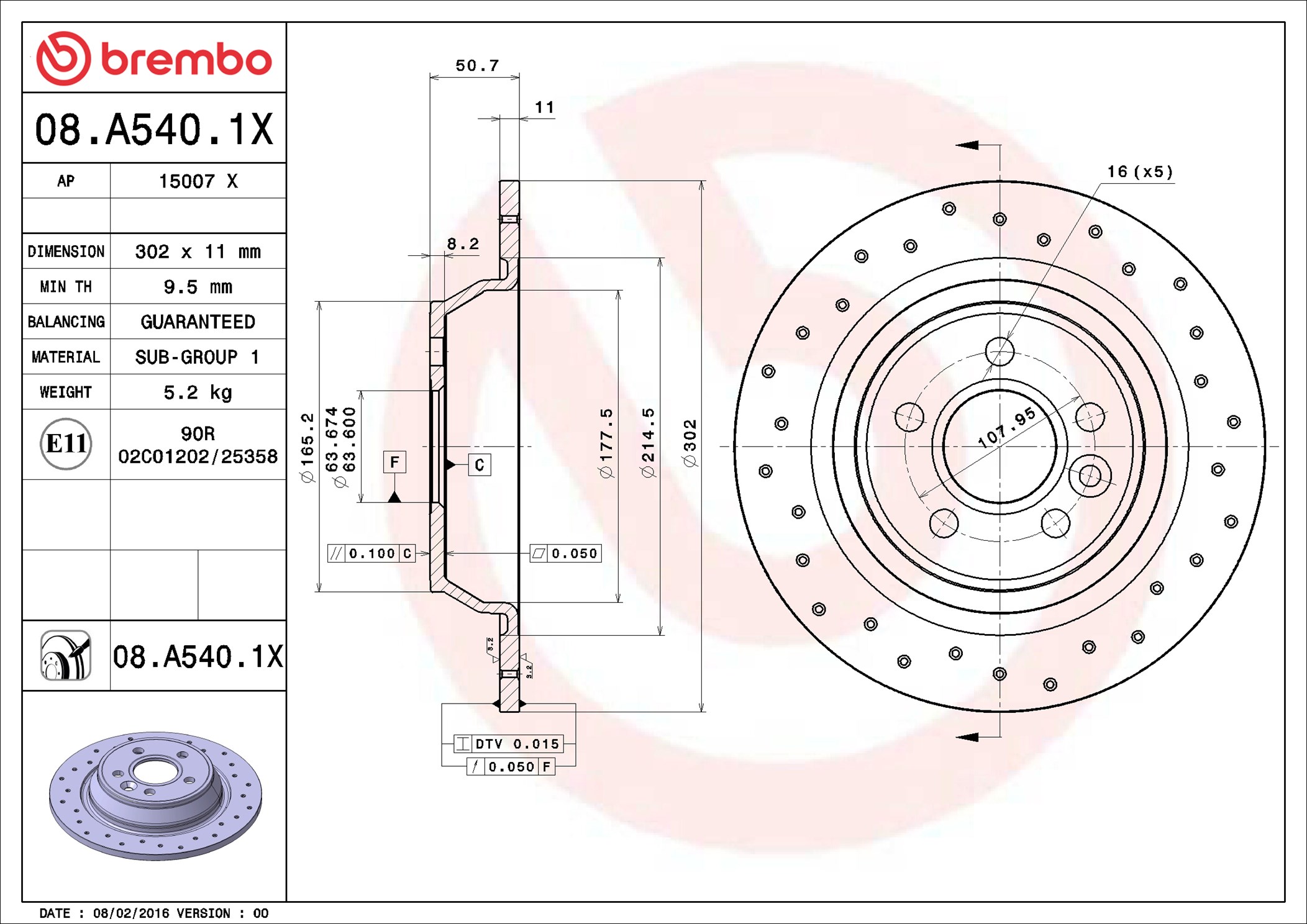 BREMBO 08.A540.1X - Brzdový kotouč