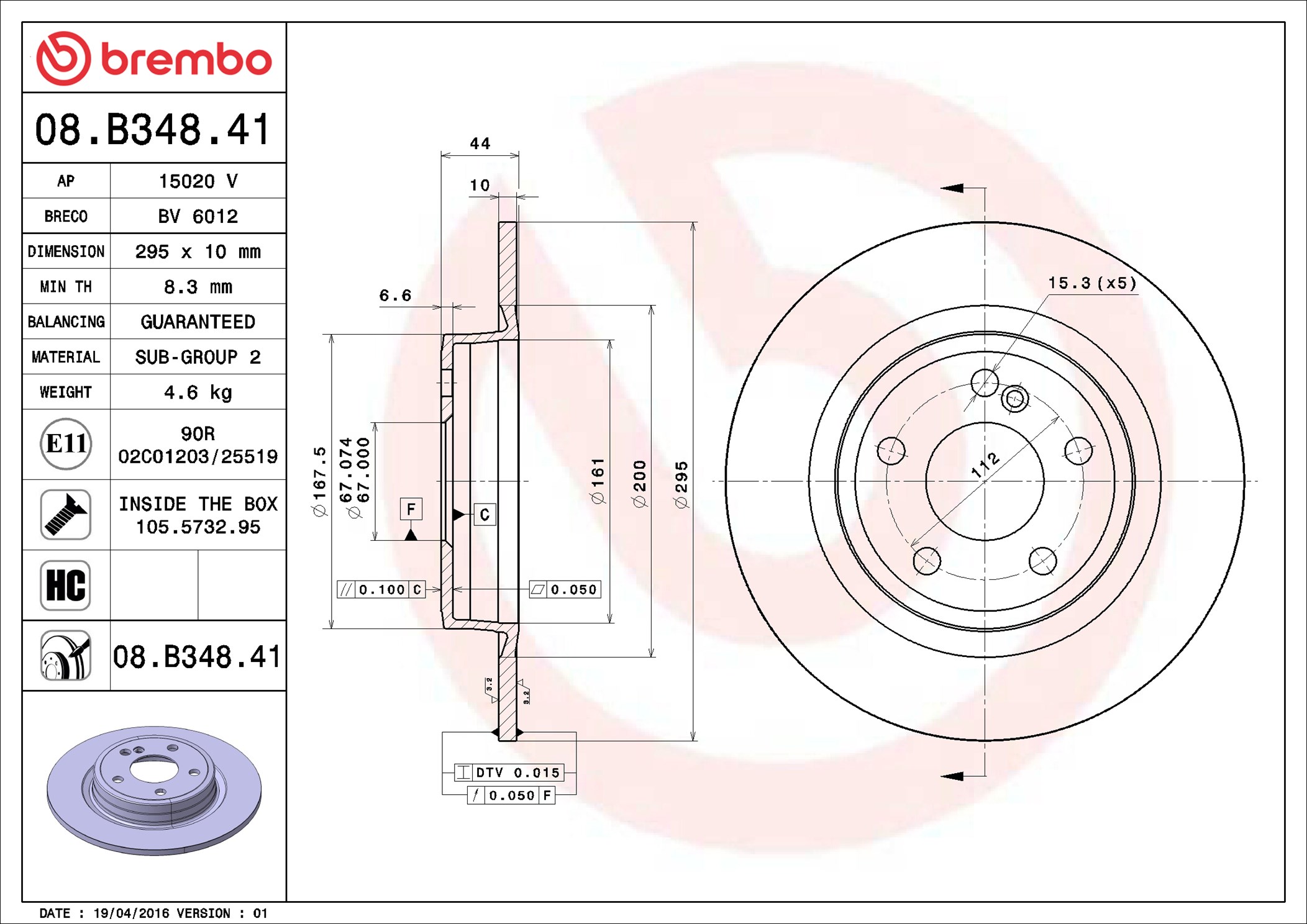 BREMBO 08.B348.41 - Brzdový kotouč