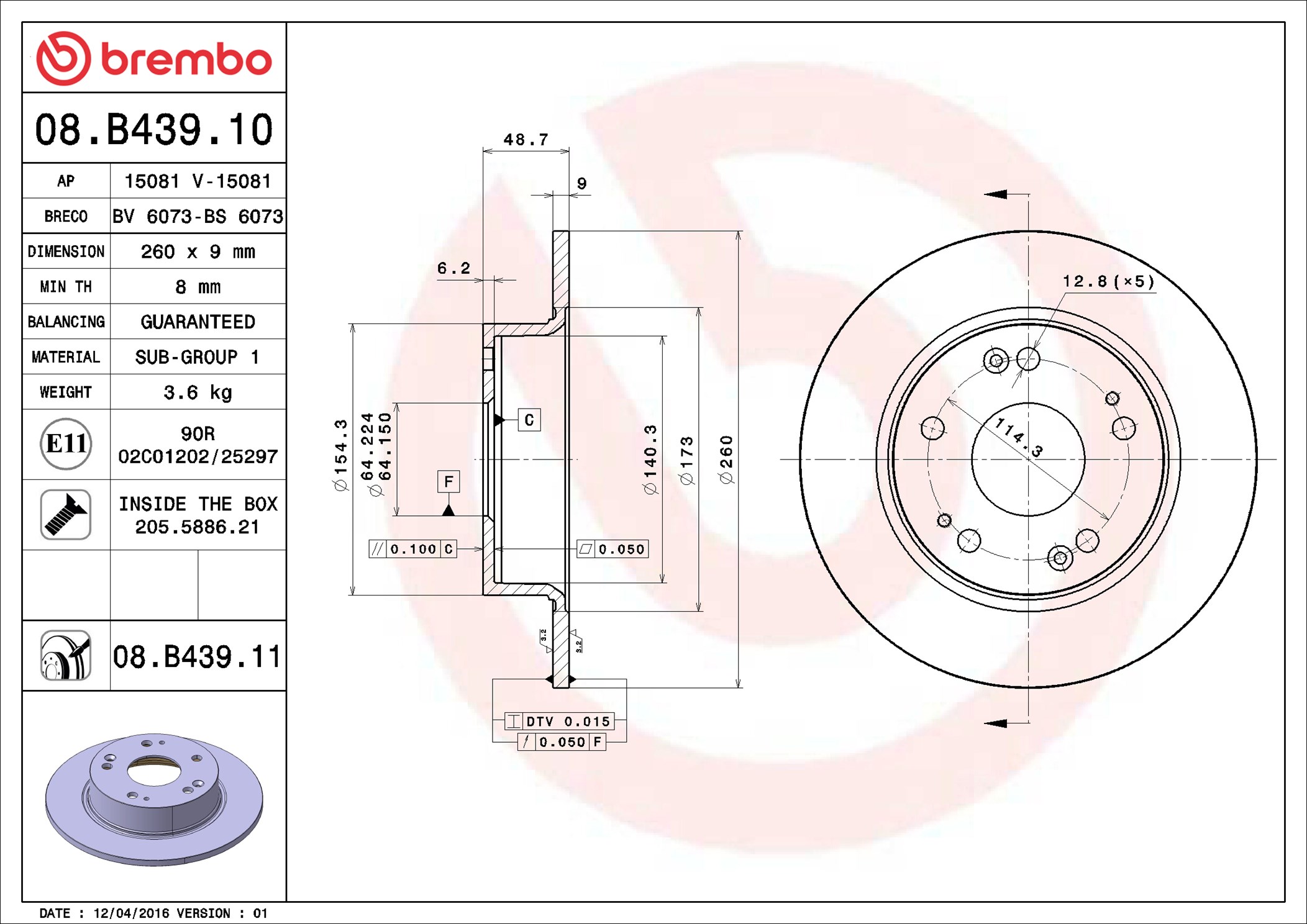 BREMBO 08.B439.11 - Brzdový kotouč
