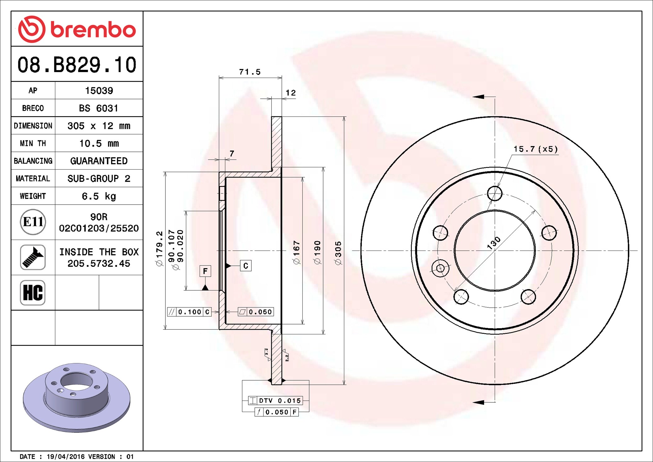 BREMBO 08.B829.10 - Brzdový kotouč