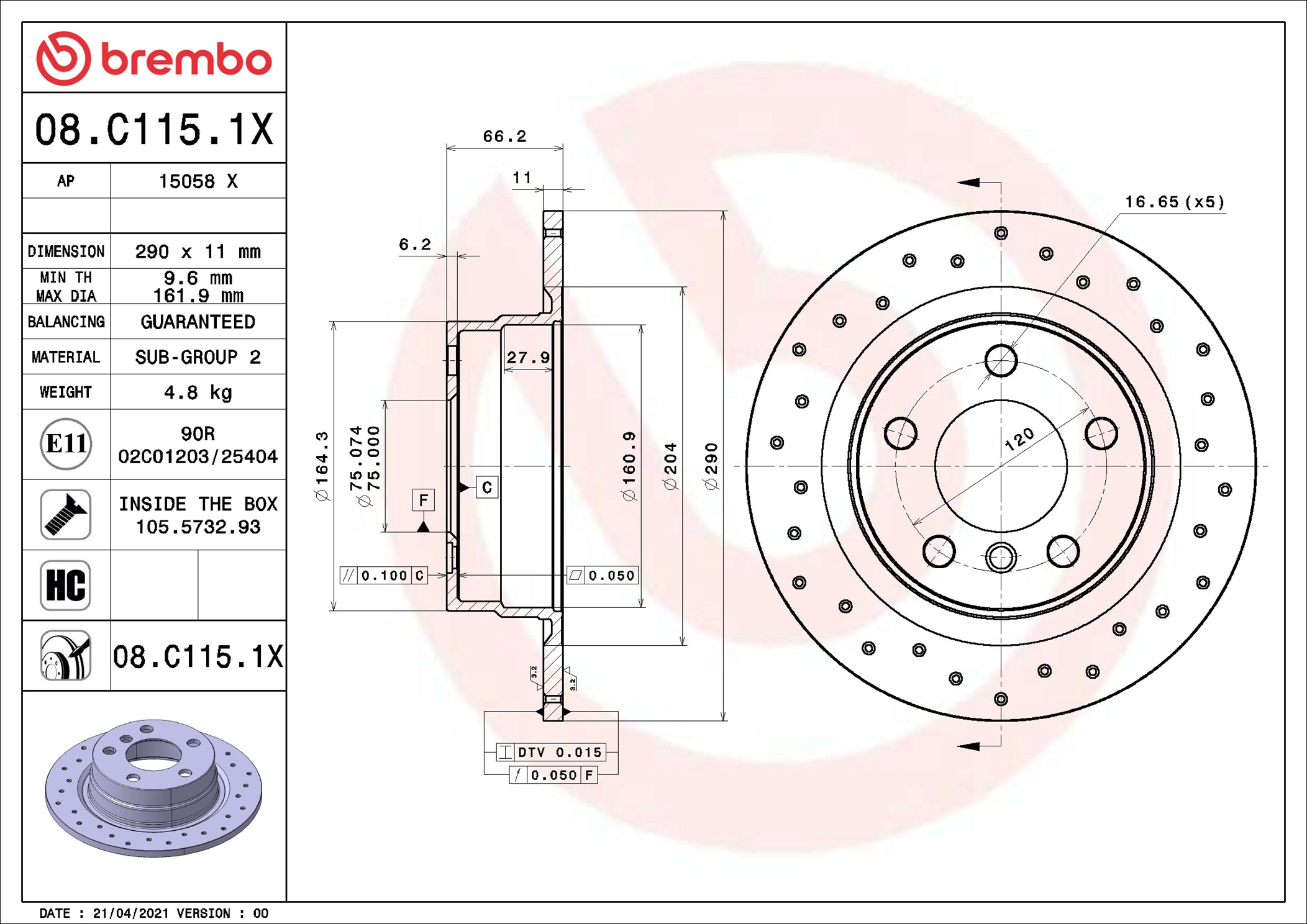 BREMBO 08.C115.1X - Brzdový kotouč