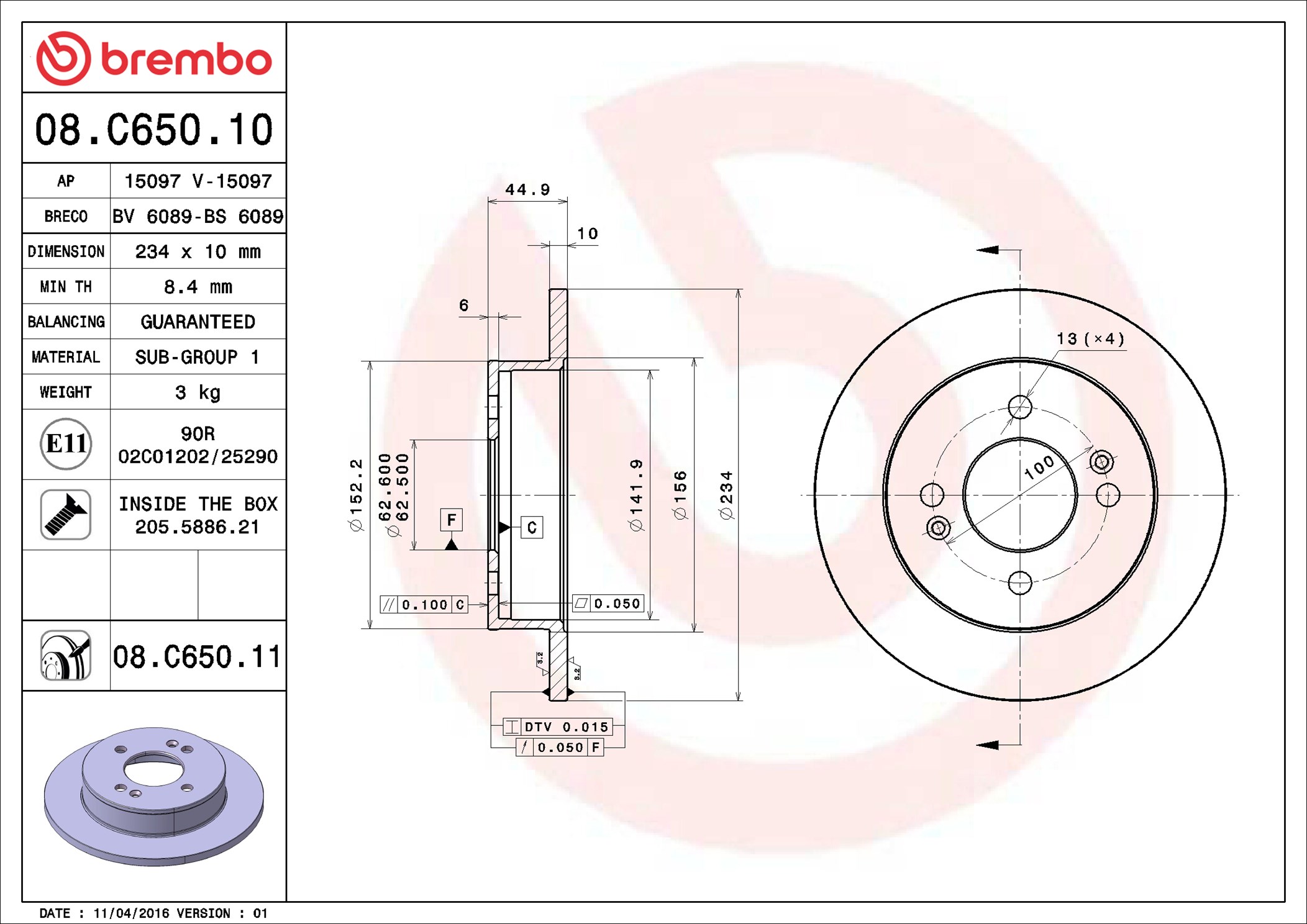 BREMBO 08.C650.11 - Brzdový kotouč