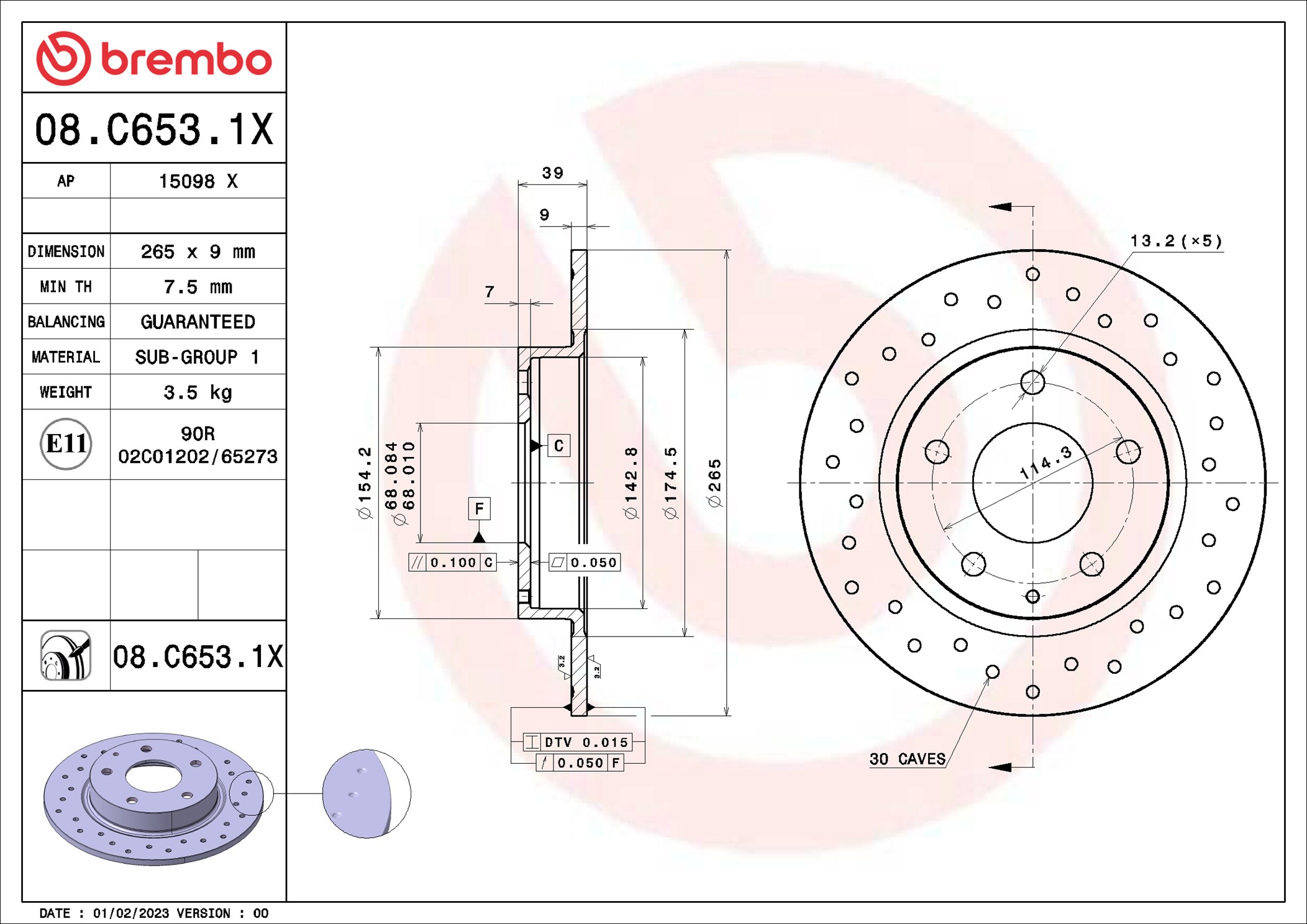 BREMBO 08.C653.1X - Brzdový kotouč